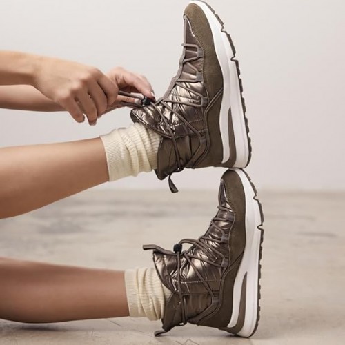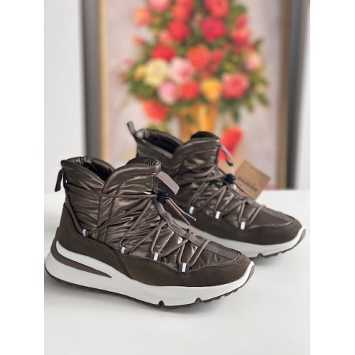 Модні жіночі зимові черевики у стилі après-ski у насиченому коричневому кольорі. Поєднання об’ємного дизайну з м’якою оббивкою створює трендовий і водночас практичний вигляд. Завдяки литій підошві з EVA вони легкі, але міцні, а анатомічна устілка з технологією Gio Memory Effect дарує винятковий комфорт і амортизацію при кожному кроці.