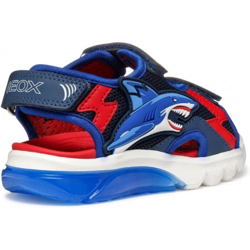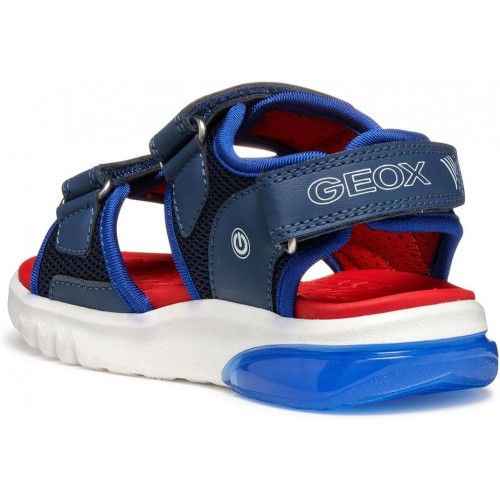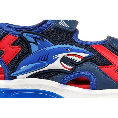 Босоніжки Geox Ciberdron — справжній хіт для активних хлопчиків! Ергономічний дизайн забезпечує максимальний комфорт весь день, а легка конструкція і дихаючі матеріали дозволяють ніжкам залишатися сухими навіть у спеку. Найяскравіша частина — вбудовані LED-вогники в підошві, які загоряються при кожному кроці — це не просто сандалі, а справжня пригода з кожним кроком!